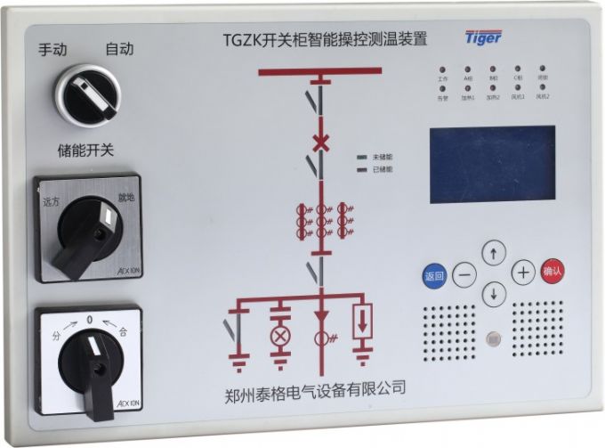 TGZK系列开关柜智能操控测温装置是根据当前电力系统开关柜技术发展而设计开发的一种新型的模块化、智能型的操作测温显示装置。 该系列产品集主回路模拟显示,断路器分合状态指示,操作机构储能状态指示,接地开关分合状态指示,隔离开关分合状态或手车位置指示,高压带电指示及闭锁,智能防误语音提示,人体感应报警语音警示,温湿度实时显示,自动加热除湿控制,断路器触头、母线及电缆接头温度测量,回路电流、电压、频率、功率、电能实时显示,故障记录查询,时钟指示,手动自动储能选择,远方就地切换,分闸合闸操作以及RS485通讯接口等功能于一体,可根据需要选配。该产品以一体化布局配套装备于开关柜,将简化开关柜的面板结构设计,美化开关柜的面板布局,完善开关状态的指示功能和安全性能。 该系列产品可用于3.6~40.5KV的户内开关柜、适用于中置柜、手车柜、固定柜、环网柜等多种开关柜,符合IEC255-22标准。 |